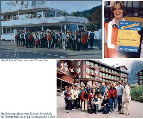 Vom 20. bis 22. August 2004 war der Algunder Männerchor auf einer Kulturreise in der Schweiz. Der Jodlerclub Stockhorn-Thun, mit dem den Algunder Männerchor eine mehrjährige Freundschaft verbindet, lud die Algunder Sänger zu einem Besuch ins Berner Oberland ein. Die Fahrt führte den Chor samt Angehörigen durch die Ost- und Zentralschweiz, vorbei an wunderschönen Seen, an lieblichen Städtchen und herrlichen Berglandschaften. Das Ziel: das Städtchen Thun am gleichnamigen See. Am Abend war bereits eine gemeinsame Schifffahrt auf dem Thuner- See geplant. Während der vierstündigen Fahrt hatte der Algunder Chor Gelegenheit, den Schweizer Freunden einige Liederkostproben vorzutragen. Für den folgenden Tag stand ein besonderes Ausflugsziel auf dem Programm: die Fahrt mit der Jungfraubahn zur Kleinen Scheideck - ein atemberaubendes Erlebnis, allerdings nur bei schönem Wetter. Während der Nacht hatte es geregnet und obwohl am Morgen die Nebelfetzen bis ins Tal herunterhingen, fuhren wir mit dem Bus nach Grindelwald. Nach einem einstündigen Bummel durch den berühmten Touristenort ging die Fahrt hinauf zur mächtigen Eigernordwand. Die drei Eisriesen Eiger, Mönch und Jungfrau verbargen ihre Spitzen zwar größtenteils im Nebel, ab und zu ergaben sich aber trotzdem spannende Momente für die Hobbyfotografen, diese grandiose Bergwelt in Momentaufnahmen einzufangen. Über Wengen und Lauterbach ging die Fahrt zurück ins Tal. In wunderschöner Panoramalage über dem Thunersee gestalteten wir zum Abschluss - gemeinsam mit unseren Freunden vom Jodlerclub - einen volkstümlichen Abend mit Gesang und uriger Musik. Dabei bot sich auch die Gelegenheit, uns bei den Schweizer Freunden für die herzliche Aufnahme zu bedanken. Im übrigen waren wir uns alle einig: das Berner Oberland und Südtirol gehören wohl zu den schönsten Flecken der Erde und sollen so erhalten bleiben. Der folgende Sonntag, ein Bilderbuchtag, versprach eine schöne Rückreise. Nach kurzer Besichtigung der Altstadt von Thun fuhren wir über die Bodensee-Route mit vielen schönen Bildern und Erinnerungen nach Hause.