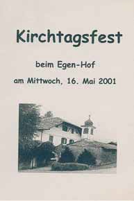 Am 16. Mai 2001 wurde am Egenhof erstmals wieder das Kirchtagsfest zu Ehren des hl. Johannes Nepomuk feierlich begangen. Der Kirchtag wurde auf Wunsch von Barbara und Thomas Clementi, Inhaber des Hofes, vom Männerchor neu eingeführt und veranstaltet (Festmesse in der Kapelle, mitgestaltet vom Männerchor, anschließend Kirchtagsfest).