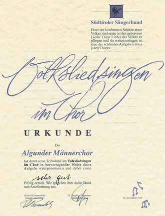Das Volksliedsingen im Chor im Bozner Waltherhaus am 14. November 1998 stellte das Finale des vom Südtiroler Sängerbund veranstalteten Landessingen zur Pflege des Volksliedes dar.