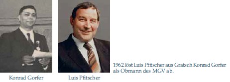Im Jahr 1962 löst Luis Pfitscher aus Gratsch Kornrad Gorfer als Obmann ab. Mündlich dokumentiert sind aus dieser Zeit Auftritte bei kirchlichen Feiern und zu verschiedenen Anlässen, wie Hochzeiten (z. B. jene von Bürgermeister Hans Gamper, Franz Haller, Franz Leiter, Bruthendler, Walter Dissertori), bei Begräbnissen usw..